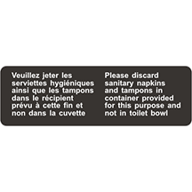 VEUILLEZ JETER LES SERVIETTES HYGIÉNIQUES AINSI QUE LES TAMPONS DANS LE RÉCIPIENT PRÉVU À CETTE FIN ET NON DANS LA CUVETTE