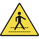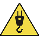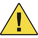 The caution symbol consists of a black image on a yellow equilateral triangle, surrounded by a black border. |